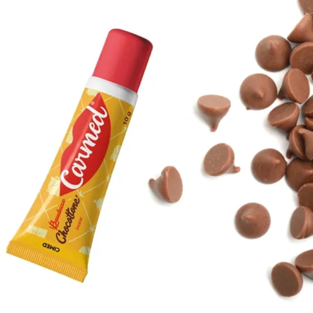 Hidratação com gostinho de Natal o ano todo! O Carmed Chocottone traz aquele aroma doce e aconchegante do clássico chocotone — mistura perfeita de chocolate e massa fofinha — em uma fórmula que nutre e protege os lábios com muito conforto.