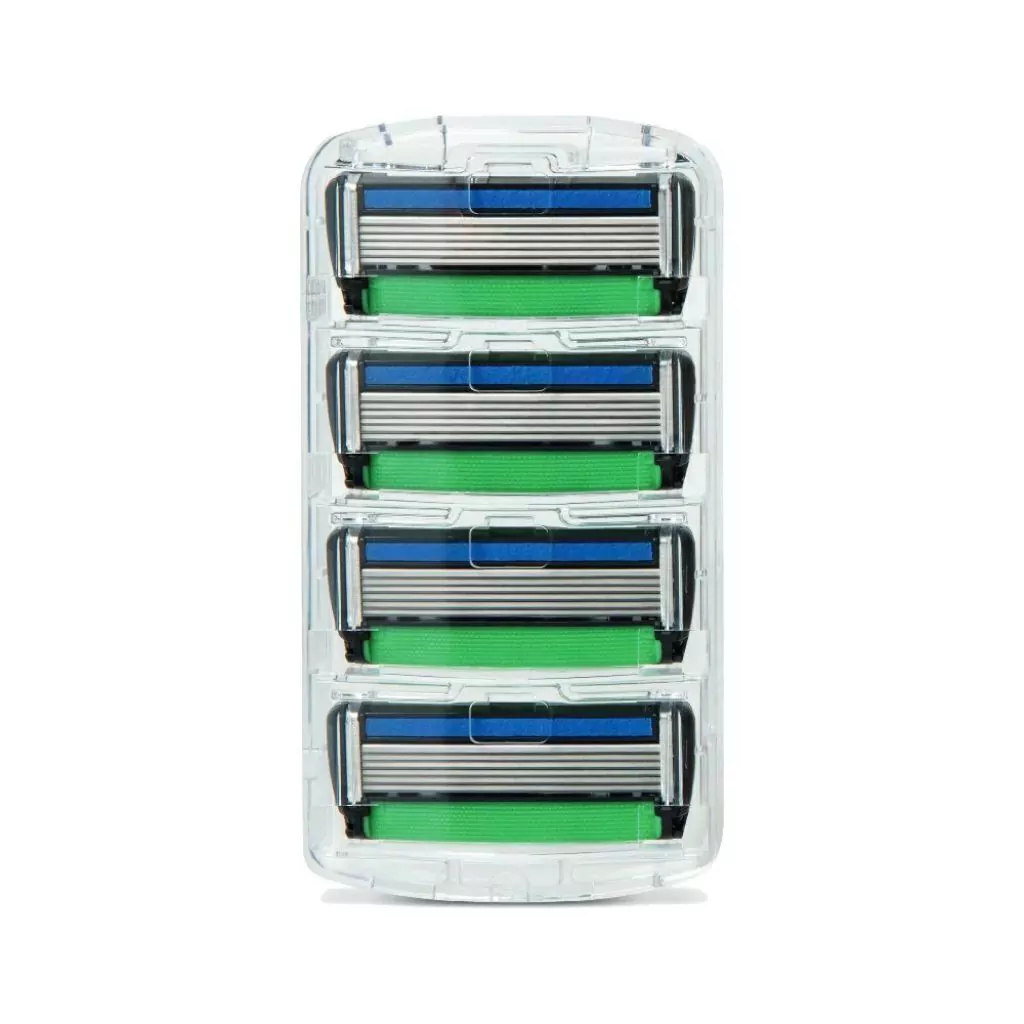 Conjunto de 4 recargas para o aparelho de barbear The Razor6, da Dr. JONES. Cada recarga contém 6 lâminas de Aço Inoxidável, fita lubrificante com Aloe Vera, Vitaminas e Óleo de Argan, faixa de segurança e um Trimmer no verso, para lugares de difícil acesso e precisão no desenho de barba.
